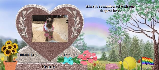 Penny's love, happiness and energy always pulled people to her. She was always in the window looking to make new friends. She was the most excited, happy creature I have ever known.