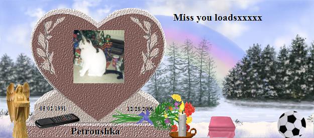 | Petroushka was an angel who came to me unexpectedly and stayed with me for 15 years. He looked at me with eyes that shone with love. He was so well behaved and gave no trouble. He was an independent spirit, laid back and happy with his lot, enjoying each day as it came and giving me so much love in return. I miss him very much. |