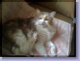9/19/2018-Today is the anniversary of us helping Poopy over the Bridge. Me and Molly doing a service. Watching Stevie Wonder's performance of "As" he gave at Aretha Franklin's funeral. After a good cry, read the prayer for the dead over her grave. Feeling sad; we'll miss her forever, but so warmed we got to have her for all those years. Uploaded a couple of new pictures. One of her grave-site, with the guardian Kimodo Dragon, and a closeup of her commemorative statue we got for her. Raise one to Poopy. The Queen is dead; long live the Queen! 7/17/2018-Been a long time since I posted, though I visit regularly. Just turned 69 Y.O. couple days ago. Still feel pretty good for my age. I'm hoping to get to Poopy's cat equivalent age. Other than orthopedic stuff, she was doing OK until shortly before she passed. Once she got ill, she went downhill quickly. I can hope for the same, I guess. Not ready yet; just resigned to it. I miss Poopy. She's buried in the back yard. We bought some pretty cat statuary that sits by her grave. I enjoy looking at it and talking to her. And I still see things. 12/26/2017-I'm a huge Futurama fan, which has recently been playing on the SyFy network. Once again watched the ending to the "Jurassic Bark" episode. I'm not going to go into detail about it, except to say its a heart breaking testament to loyalty, and the saddest ending to a comedy I've ever seen. Every pet owner should check it out. It brought me back to thinking about Poopy, and pulled the sadness to the surface. As we head into a new year, we're both missing her a ton. I'd give a lot for a couple minutes of lap time. But even more, I'm seeing things. A calico flash. A curled tail tip. A blur across the floor, an image in the corner of my eye that's not there when I look right at it. And of course, nothing's ever there with a second direct look. I generally don't give any currency to ghosts and such, but these flashes are both unsettling and hopeful. If there is a realm where some part of her essence exists, and it's intersecting with ours, it gives me some hope. It's a comfort to imagine that she's somewhere, free of her Brokedown Palace, playing with new friends, wowing the boys, and waiting for me to show up. 10/3/2017-Been two weeks since Poopy departed. We've been thinking about her a lot today. Wanted to thank everyone who took the time to make such kind and supportive entries to Poopy's Guestbook. We're happy you enjoyed her story. I see I have a lot of letters to use, so there will be additions. 9/27/2017-Let me introduce you to Poopy. She became a family member in 2000. My wife and I decided we wanted to bring another cat into our lives, and visited our local animal shelter. We peered into the cages, looking for that lightning bolt. Had some interest in one kitten, but learned she'd been promised to another family. Disappointed, we were on our way out, when this kitty bulled her way to the front of her cage, stuck her paw through the bars at me, and yelled "Take me! Take me!" We were impressed by her enthusiasm, and decided to take her on. By god, as it turned out, she adopted us! We took Poopy home a few days later after the required spaying. Took a while to get our relationships figured out, but as with all good cat/human stories, it worked out. As a kitten, she was kind of cute, nothing special. Her card ID'ed her as a "muted calico". If you saw her as a kitten, there was no inkling she'd turn out the way she did. She was, by any standard, a beauty, a real Fancy Cat. We believe Poopy was totally aware of her looks. She didn't walk, she strutted into the room. When she saw a camera pointed at her, she worked it like Heidi Klum. To the very end, even the night before she left us, I took some iPhone shots, and she was doing it like it was Fashion Week. Poopy's personality was a kaleidoscope. Loving, standoffish, demanding, opinionated, headstrong, vigilant, territorial, demonstrative; you name it, she expressed it. In other words, total cat! She terrorized veterinarians wherever she went. She was one of those cats with special notes in her chart. She always had a special place in her heart for food. But amazingly, it turned out she was great with kids! Patient and never lashed out at a child, like she knew children were something more delicate and precious than us. Poopy got more affectionate as she aged, with a lot of lap time for us. She always escorted me to bed. Made sure I got tucked in and safely asleep before she went off and did whatever deviltry cats do when you're not awake, though by and large, when me or my wife woke up, she was curled up in between us. As Poopy aged, as so many of us know from our shared experiences, she declined. It began with orthopedic problems, like arthritis and sprains. We treated her with pain meds, and in the last year of her life, cannabis drops (highly recommend!!!). She developed kidney disease, and in the last few months, tested for hyperthyroid. She got stiff as a board, and it gradually got more and more difficult for her to get around. We were keeping her afloat with her kidney food, a weekly pain shot, and her THC drops. The turning point was the hyperthyroid diagnosis. We put Poopy on medication prescribed by the vet, and she went off a cliff health-wise. We'll never know if it was a reaction to the meds or just a rapidly escalating disease process, and at this point, it doesn't matter. But 10 days ago, on Sunday night, we watched as Poopy stumbled for about six feet. She stopped in her tracks and sat there with her chest heaving for a long while, trying to catch her breath. It was then we know she was dying from heart failure. There was no way we were going to subject Poopy to such a horrible death, drowning in her own fluids. I called one of our nearby Rainbow Bridge vets the next morning and made the appointment. I have to hand it to our little gal; a fighter to the end. Her last morning, Poopy got herself up and to the litter box to do her busi
