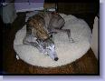 My sweet and precious Riley, you had such a big heart that was full of love. You were my true love and there will always be a place for you in my heart, until we meet again. Some special memories: Riley's 8th birthday party - we had a dozen or so adults, nearly a dozen kids, and four other dogs over to celebrate. Riley had such a great time! It was his favorite type of event - tons of people and kids, all focused on petting him and giving him treats. Riley loved tearing open his Christmas presents, either on Christmas day or earlier, dogs don't know what date it is. They also can't read labels so he ended up eating several chocolate bars one year and had an emergency trip to the vet. Riley did not like to be alone and would follow whoever was in the house from room to room, often getting underfoot and occasionally getting stepped on. Unless he was lucky enough to be on the couch. I once had some friends over who were deathly afraid of dogs, unbeknownst to me. I let Riley out of his kennel and he came bounding down the stairs, excited to see the people who came to visit him. She was terrified and ran out the front door, all the way to the car, and wouldn't come back in. Riley was a well-traveled dog, he rode in the Subaru from Boise, ID, to Manassas, VA, and in the Landcruiser from Manassas, VA, to Saratoga Springs, UT. While in VA, he went to the Greyhounds Reach the Beach in Dewey Beach, DE. He also spent a couple of weeks touring around Montana and just driving to and from Miles City. He even got to go four-wheeling in Moab, UT, and in the Wasatch Range in the Landcruiser. This was after he lost his leg, the only three-legged off-road greyhound that ever was. Riley lost his right hind leg just before Christmas '08. He collapsed one evening while doing circles in the living room. The leg had been weakened by an osteosarcoma tumor. He bravely learned to get around on three legs but was never able to negotiate stairs again so Ken built him a ramp to get in and out of the back door. At night we took turns carrying him up to bed. He always had the funniest expression on his face, with his ears half-cocked and his front legs straight out in front of him, like he wasn't sure we were strong enough to hold him and he expected us to drop him at any minute. 6/6/09 - Dear, sweet Riley, it has been a week since we said goodbye and I still miss you more than words can say. You were in pain and scared as we drove to the vet, it broke my heart to see you suffering. We held you close and told you what a good boy you were, gave you people kisses and wiped our tears in your soft neck. Your big heart was still too strong, it just kept beating after the first dose. I know you didn't want to leave us, I didn't want you to go either. I miss you so much, your nose poking in the bathroom door every morning - curious to see who is out of the shower and can let you out, arching your back and wagging your tail for a nice back scratch, standing by the foot of the stairs patiently waiting to be carried up to bed and so many more little things that were just you. 6/13/09 - Sweet Riley, I missed you terribly this morning when we packed up the car and left on our trip to MT. The back part of the Subaru that was all yours was filled instead with suitcases and a sleeping bag. It broke my heart to not have you there, looking up from time to time to see what was going on and then going back to sleep. You were always the best traveling companion! I can't believe that we drove from ID to VA and from VA back to UT. Not to mention all the weekend trips to MT, DE and Annapolis. You were such a great traveler and got to see and meet so many people. You surprised some people who weren't expecting your sweet face staring at them out the back window. I still have the greyhound license plates and think of you everytime I see them. I miss you. 6/30/09 - Has it really been a month since you left? I still miss you so much every day, your presence and all the cute little things you would do. I miss you in the morning with your big yawns and full-body stretches in your bed, then rolling over on one side lazily to offer your belly for rubbing before committing fully to waking up. I miss your circles round and around before laying down in your bed at night and the big horse-sigh that you would let out to say 'whew, what a day' before you went to sleep. I miss you, sweet pup. Mommy loves you. 8/30/09 - Driving back from MT today and was thinking about all of our travels together pup. You would have enjoyed this trip into the mountains. Someone asked if I was going to get another dog, but I still can't even think about that. Even now I am fighting back the tears, thinking about your sweet, loving face. No dog could ever take your place, you gave me so much love and even with you gone I hold onto it in my heart. 11/7/09 - We went and saw some rescue greyhounds today. I thought it would be nice and make me feel good, but they just made me think about you more. I couldn't help but compare them to you - and you are more handsome and sweeter than all of them! I miss you sweet pup. 12/25/09 - First Christmas without you sweet boy. How you loved to open your presents! I want to smile and cry at the same time. I miss watching you with your presents and laying on your bed in the warm spot by the fire. It's just not the same without you. 5/30/10 - Dear sweet Riley, you left one year ago but it doesn't feel like that long. It still hurts so much to think about you leaving. Every once in awhile I wake up and expect to see you sound asleep on your bed in the corner. I even think I hear your funny snoring from time to time. I tell myself that you are not in pain anymore and are running and playing with the other dogs now, but I miss you so much! I wish you didn't have to leave! I miss you sweet boy. Mommy loves you. |