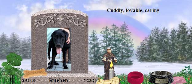He was my best friend, my guardian angel & my soul mate. He watched me struggle to piece together my own life, while he lived out his own, thank you for staying by my side, until I finally found the right path, I will never forget you. I will always love you and you will always be in my heart and an incredibly special part of my life. Joe Rueben had to be one of the best guide dogs to travel with. When I first got him, we were living in Alexandra, VA. Every weekend my friend Shawn and I would make the 5 + hour commute to and from NY. Rueben would just get in the back of the car on the floor curl up and go to sleep till it was time for us to take a rest stop. Joe One of the first times I took him out to a restaurant was a fast food place called Wendy's. I remember we were walking to the table and I said to my friend Shawn why is he always putting his head down. Somebody must have spilled a ton of chicken nuggets and French Fries and he was having a meal for himself. Joe Rueben would never bark unless he wanted to play and tease me. One of the fun games he used to play was cat and mouse or hide and seek. Sometimes when he did not want to go for a walk he would run around the house and I would have to chase him and slowly start to corner him by making barriers until I could catch him. Now you see why it was hide and seek or cat and mouse chase. Joe Every morning Rueben would wait outside the bathroom door for my mom to come out to give him a treat. The amazing thing was if he were not upstairs when mom got up and he heard my mom get up he would run up the stairs and greet her. Joe One summer day my nieces had a blowup pool int the yard probably about 1 1/2 feet high. So, he was out in the yard and decided he needed to cool off and took a running jump over the wall and landed in the pool and then decided to lay down. Joe If my dad ever had the sprinkler on in the yard, he would just want to run out there and lay down next to it and get soaking wet. Yes, Rueben was a true lab he loved water and could not get enough of it. Joe One day I went to answer the phone and left the shower on and so when I came back to get into the shower guess who was in the shower taking a shower? Yes, you got it Rueben. Joe Rueben was Mr. Ice cube dog. Every time somebody opened a freezer no matter whose house, he was at and was roaming around it he would run to the freezer and get an ice cube. Even when he stayed downstairs with me when my parents opened the freezer upstairs, he would come charging up the stairs to get an ice cube. Of course, he loved when it snowed, he thought it was one huge ice cube and would just go outside and start eating all the snow. Joe He was the best and smartest guide dog I ever had and the most safety conscientious one. For example, I would have to walk in the street near the corner of a somewhat busy street. Every time a car was turning off that busy street onto the street where we were walking before that car was on the street he would stop and do what he was trained to do when a car would pass us. When we were walking on the sidewalks and approaching a corner and a car was coming up the street, he would stop far back to protect me. Amazing! No matter where he was in the house as soon as he heard me take his harness off the back of my door he would come running and wait for me to leash him and harness him up so he could guide me. He loved to guide and that is what they say guide dogs want to do guide their owners. Rueben did that and wanted to do it. Joe When I used to visit Joe and his parents home, my first greeting was from Reuben. Lots and lots of licks and a never ending wagging tail. After things settled down a bit a fun toy throw and fetch game ensued. I will always remember a very happy dog. I am sure Reuben will share some ice cubes with Cameron and Laddy. Janet |