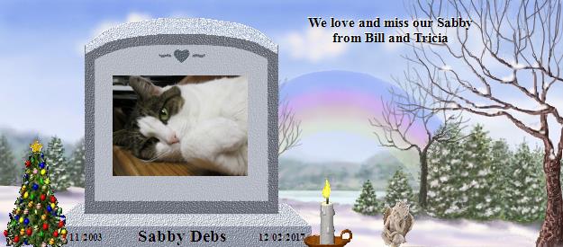 Welcome to Sabby Debs's Rainbow Bridge Memorial Residency