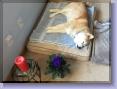A few weeks after arriving in Colorado, we decided that Taifun needed a companion; we spoke with Pam who told us she had special little Shiba who was very sweet but had suffered some bad luck and been in and out of her kennel. He was Taifun's half brother, a year older and very accommodating. We agreed and Sammy was flown to Salt Lake City where we met in the Luggage Terminal Office. When I opened his cage, cautiously, he licked my hand and I put on his leash. He came out of the cage and never went back. That night he slept on the bed with Irmi, Taifun and myself.. Sammy was a great traveler; he would fall asleep within 5 minutes of getting in the back seat. He didn't care where he was as long as his brother and people were with him. I always said that Sammy would storm Hell with a bucket of ice to stay with his people. Sammy deferred to Taifun when they met new people; Tai was the meeter and greeter, but after 30 seconds he moved off and then Sammy would remind them that he was there and wanted to be petted. Sammy would sit/lie for hours next to some one willing to pet him. Tai stayed close but just out of reach. Sammy was always a bit more independent than Tai; a few weeks after he came to us, he bolted through an open gate after one of the many cats near us with Tai in hot pursuit. I called to them and Taifun returned, unusual in a Shiba. Sammy disappeared and we spent hours searching for him on the canyon rim, (mountain lion country). He showed up several hours later, totally unconcerned. For the next 10 years we took Taifun and Sammy on all our RV trips: Bisby and Tombstone (13) , Grand Canyon North(14) and South, Las Vegas (15) , Bryce, Zion(16), Arches, Canyon Lands, Mesa Verde and on Jeep trails in the Rockies(17) yellowstone, badlands. The Shibas were always with us. Sammy was always a good (relaxed) traveler; Taifun, however, became increasingly anxious riding in the truck and was usually exhausted at the end of each travel day and immediately collapse and slept in the RV. Sammy's only real concern seemed to be "not to be left behind". He showed real fear the first time we went to the vet, but relaxed once we returned him to the car. As it became increasingly clear to him that we were truly his furever home and family, he became absolutely comfortable in whatever surroundings he found himself. In later life, he would fall asleep during his acupuncture sessions. It should be noted that Sammy was never alone for the rest of his life after Salt Lake City. I called him my little "Boll Weevil" because he came lookin for a home and he found one with Taifun, Irmi, and Scott. Sammy passed in his sleep, as he had lived much of his life, lying next to Irmi. Please also visit Joshi (We-Sedso Joshe). |