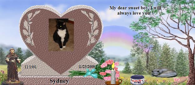 My dear sweet boy, I was so very, very blessed to have you in my life for 18 years. It wasn't near long enough, but it was time to let you go over the bridge so you could be healthy and not in pain anymore. I will always love and miss you. Love, Momma |