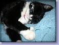 In the fall of 2002 you showed up here looking for a home. After we found out you had been left behind by some neighbors we took you in. And, what 12 years of joy you brought to us. We loved your little paws. (You had extra toes) so we named you "Thumbs". You were never much of a lap cat, but you had your own little personality. You knew who to go to for food and who was your "doorman" The only place you like to drink water was in the bathroom. You had your own bowl, but if we came by you wanted us to turn on the faucet for you. We went through a lot of changes together, but you always adjusted. We always had a birthday for you every year. Last May you begin to get sick. I knew your time with us was getting short. Next to your last day here, you wanted to go outside and run around. I found you laying in a spot where you first laid when you came up that I hadn't seen you lay in years. I think you were trying to tell me your life had come full circle, and you were ready to go. I always promised you I would never leave you to die alone. It was hard to see you go, but it was best for you. You went peacefully. I didn't take your collar off that morning before we left so I would have something to bring back home. We had you cremated so you could always be with us. We picked you out a pretty urn with a place for 5 pictures of you to go. Christmas was a week ago. It was so lonesome without you. You always had your bag of goodies under the tree. My little angel, rest in peace and be happy at Rainbow's Bridge. Grandmaw and Paw-Paw will always love and miss you.