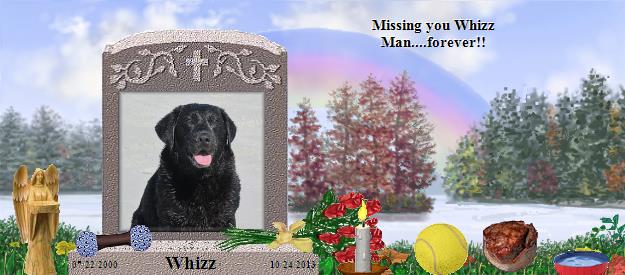 October 24, 2013 Tribute to Countryways Whizz This morning, we lost our beloved Whizz -- our English Labrador Retriever who lost his long and courageous battle with lung cancer. Whizz has brightened our lives since the day we received him in 2001 -- when he arrived in the Bay Area from Devon England. "Countryways Whizz" was born on July 22, 2000 to Countryways Jewel (mom) and Garendon Captain (dad). Captain was the winner of the 1998 Retriever Championship (Queen Elizabeth herself presented Captain's owner Steven Jolly with the award!). Whizz was married to Fly Messemer, who was born on September 12, 2002. She was the daughter of Wiscombe Diva (mom) and Shonagar Bantur (dad). Like his father, Whizz dazzled many with his retrieval skills. People would literally gather on the beach to watch Whizz leap through the air over the water to fetch his retrieval dummy. It was quite literally poetry-in-motion! Whizz enjoyed a wonderful life with one mission -- to love us unconditionally and bask in the love we bestowed on him. Whizz was (is) a role model for all of us on how to live in the moment, maintain a positive spirit, have impeccable manners (including never begging at the people table, never getting on furniture, and only chewing (but never destroying) on his toys and never my shoes), and not dwell on negatives or hurt feelings. He loved and engaged with people and other dogs. He was a gentle soul, loyal, never complained, and a true athlete. But what we will remember Whizz best for was his gentle and sweet spirit and how he enriched our lives. As has been said to us, Whizz was a once-in-a-lifetime dog. I close with 2 quotes in Whizz' honor: One is from a gift a dear friend gave us when Whizz began the final stage of his illness, "Dogs come into our lives, leave paw prints on our hearts, and we are forever changed." The other is what I believe Whizz said to us this morning before he shut his eyes for the last time -- ironically, one of our daily scripture readings for this week, "I have fought the good fight, I have finished the race, I have kept the faith." (2 Timothy 4:7) We will miss you sweet Whizz. XO Debbie and Jim Messemer Please also visit Fly. |