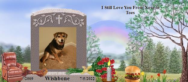 You are still loved from your nose to your toes. Its been two years since you departed this life. It was a very difficult decision. I wanted to keep you here. I couldn't cause I didn't want you to suffer. I still cry and tear up. That's because of thirteen years of good times, bad times, car rides, bone fights, tug of war. We loved taking trips to the magic window. I remember the paw on the shoulder at the McDonalds. Its when you concreted our friendship, it turned into the golden strand of loved created by God. Singing together in the car. I did my best to show you a great time. Did I do a good job? I watched you grow from a puppy to a full adult dog. Did you have a great puppyhood? You are still and always will be my child. We had each others back. I gave my best for you in the house, car, feeding time and the best Vet. I wanted to keep you healthy and comfortable. Did I do a good job? Remember the early morning walks, evening strides and drinking spring waters. You understood me when no else did. I could always get a smile, a wag of your tail or something to encourage me everything is alright. Did You have a good time? You were and still are blessing to me. I hope you can tell your friends at the Rainbow Bridge of our adventures, our travels and how you accompanied me to conferences. You showed your love and stayed strong up to the minute with me Even when I cried with you for the last time, you assured me you were alright and on your way to the Rainbow Bridge in Heaven. Your pet daddy knows you gave me your best. Your best was always great. Did I give you my best? Letting you go was the best thing for you. I wanted you to be in Heaven with God and not to suffer any down here; Even though your dad was going to grieve and have a very heavy heart. I made the best decision for you. Sometimes I feel a lot of guilt, pain and sadness. I was willing to make that sacrifice and take on all that so you could live in comfort and enjoyment for eternity with God and your pet friends. Dad will live right for God so I can see you again and You will continue to loved from your nose to your toes for eternity. I think of you daily, just know you are loved from your nose to your toes. I know you will have a great time at the Rainbow bridge. I want you to be reunited with your siblings, mother and father dog. Please tell them how much love we had for each other. I wish if we could do it again, that you would chose me as your pet parent. Would you choose me? I would choose you as my pet again. I made mistakes like many parents. Our love for each other is a golden cable made by God which will never be broken. I have to live for Jesus so I can see you in Heaven. I hope to see you in heaven with all your pet families and friends. You are still loved from your nose to your toes.